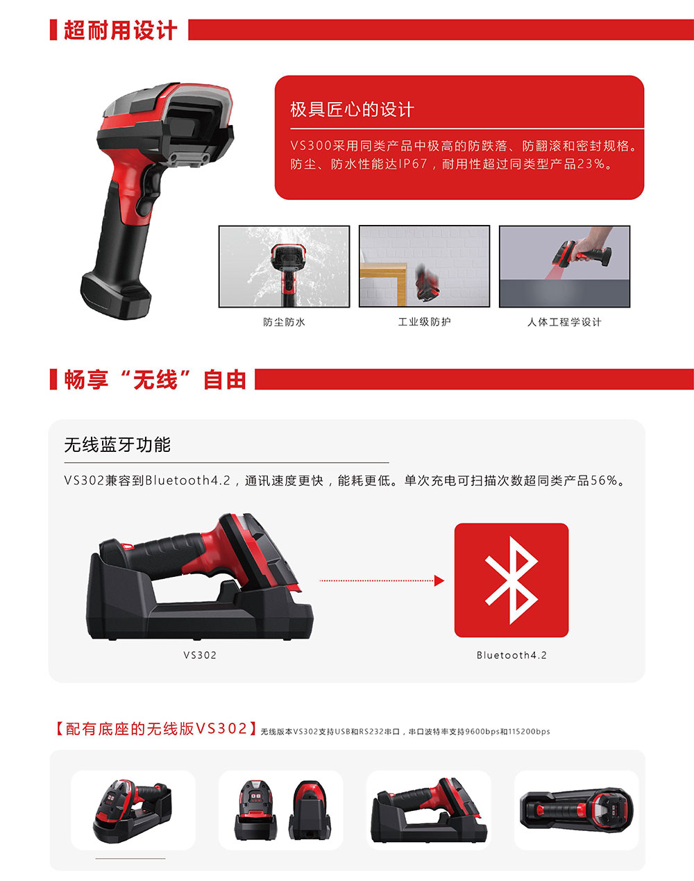 VS300采用同類產(chǎn)品中極高的防跌落、防翻滾和密封規(guī)格。防塵、防水性能達(dá)IP67,耐用性超過(guò)同類型產(chǎn)品23%。