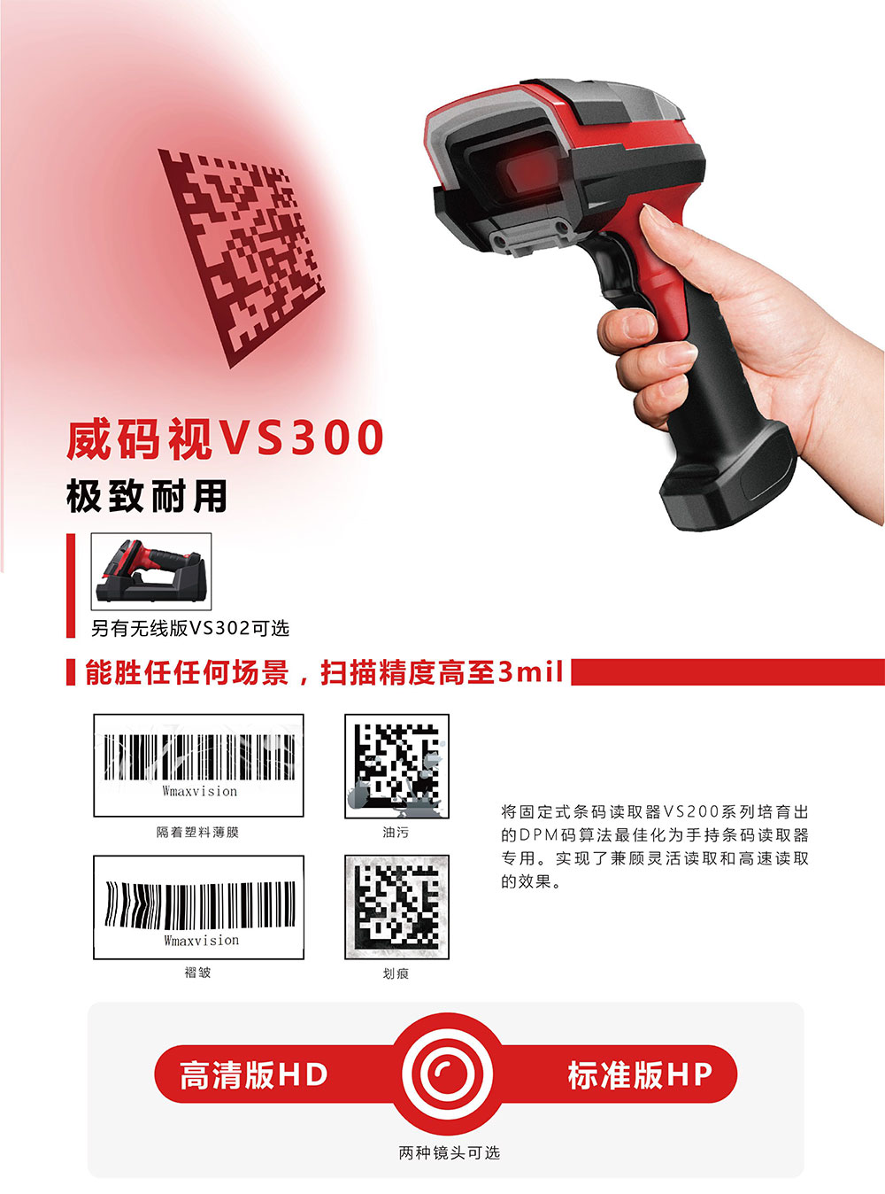 將固定式條碼讀取器VS200系列培育出的DPM碼算法最佳化為手持條碼讀取器專用。實(shí)現(xiàn)了兼顧靈活讀取和高速讀取的效果。